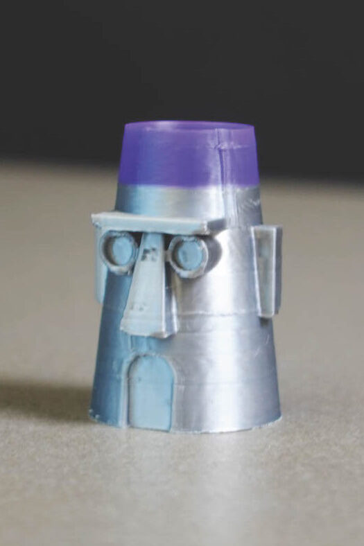 My object of choice? Why, a cup that looks like Squidward’s house, of course. I could disguise a poison of some sort around the rim, so that when the monster drank the non-existent fluid that resided in the cup, I would be rid of this madness and could go home and play video games. I don’t really remember how I gained access to a 3D printer while in this barn, maybe the poison I applied to the cup played a role in that, but nonetheless, I was conveniently able to print this cup while face to face with this monster. I decided to choose a base silver color, because it might appear extra shiny and valuable, you never know. The purple for the rim just looked nice, purple is my favorite color, yet it may have looked a little too poisonous in hindsight.