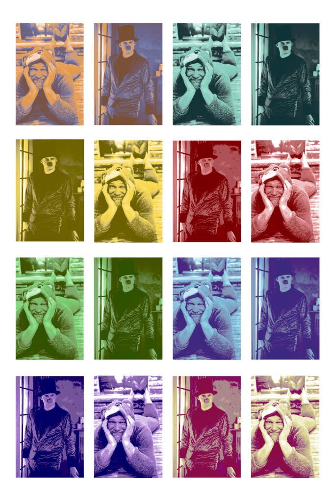 My favorite christmas gift that I gifted was a gag gift for my uncle. We draw names for this, and I have drawn his name three years in a row now. The first year I got him a 24×36 framed picture of me in a top hat, clown nose and smoking jacket, the second, he got me a 24×36 framed picture of him in a care bears onesie, and now this year I combined them in an Andy Warhol-esque masterpiece, have a look